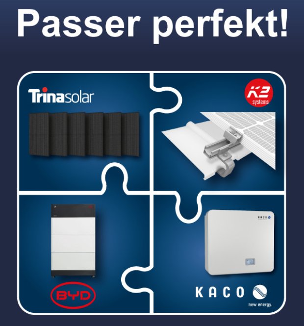 Trina Solar er en global udbyder af integrerede solcelleløsninger. Virksomheden blev grundlagt i 1997 og er nu aktiv i mere end 100 lande og regioner. Trina Solar udvikler solcellepaneler, batterisystemer, intelligente system- og operatørløsninger og tilbyder sine kunder skræddersyede koncepter til systemintegrationen. Vertex S+ (NEG9RC.27) står frem med sin høje holdbarhed og ydeevne (op til 440 Wp) i kombination med den designorienterede æstetik af et fullblack-panel ved tagparallel montage. Takket være den stabile dobbeltglaskonstruktion i kombination med N-type i-TOPCon-celleteknologien giver Trina 30 års effektgaranti og 25 års produktgaranti.