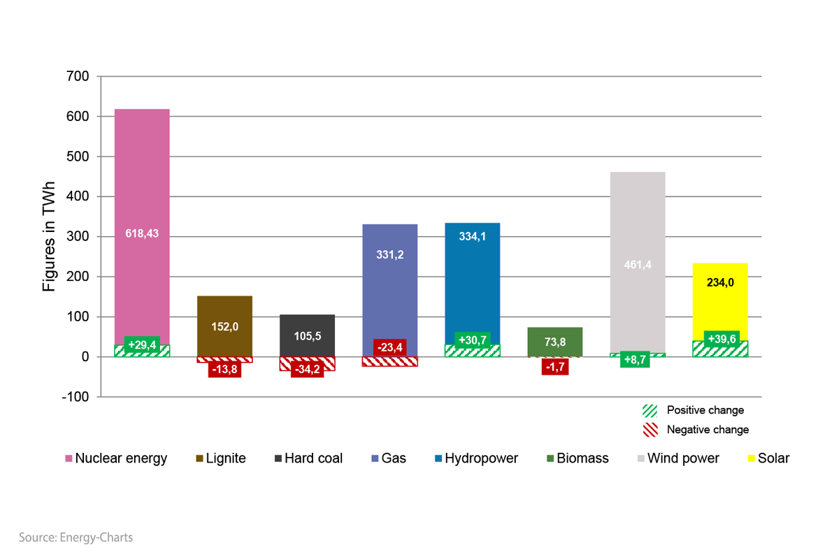 In 2024, gross electricity generation in Europe from renewable energy sources increased, mainly due to solar and wind energy. Hydropower also generated more electricity. Gross electricity generation from coal and gas has decreased, while nuclear and other fossil fuel sources have increased slightly.