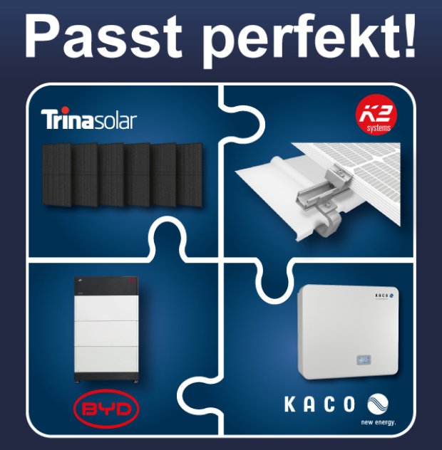 Trina Solar ist ein weltweit führender Anbieter von Gesamtlösungen für Solarenergie. Gegründet 1997, ist das Unternehmen heute in mehr als 100 Ländern und Regionen zu Hause. Trina Solar entwickelt Photovoltaikmodule, Energiespeichersysteme, intelligente System- und Betreiberlösungen und bietet seinen Kundinnen und Kunden maßgeschneiderte Lösungskonzepte für die Systemintegration. Das Vertex S+ (NEG9RC.27) besticht durch die hohe Langlebigkeit und Leistung (bis zu 440 Wp) in Verbindung mit der designorientierten Ästhetik eines Fullblack-Moduls bei dachparalleler Montage. Dank stabiler Doppelglas-Bauweise in Kombination mit der N-Typ i-TOPCon-Zelltechnologie gewährt Trina eine 30-jährige Leistungsgarantie und eine 25-jährige Produktgarantie.