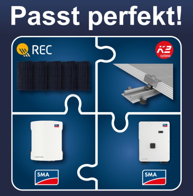Die REC Group – gegründet im Jahr 1996 in Norwegen – gehört zu den führenden europäischen Marken für Solarmodule. Seinen Erfolg verdankt das Unternehmen den konsequent hohen Qualitätsansprüchen an Produkte, Fertigung, Zuverlässigkeit sowie einem verantwortungsvollen Umgang mit Ressourcen entlang der gesamten Wertschöpfungskette. Das Glas-Folien-Modul TwinPeak 5 Black im Fullblack-Design erreicht bis zu 410 Wp Leistung bei einem Wirkungsgrad von 20,8 %, und ist dank starker Rahmenkonstruktion besonders robust. Auf die TwinPeak 5 gewährt REC die umfassende REC ProTrust-Garantie mit 25 Jahren Garantie auf Produkt, Leistung und Reparaturen für alle Anlagen.