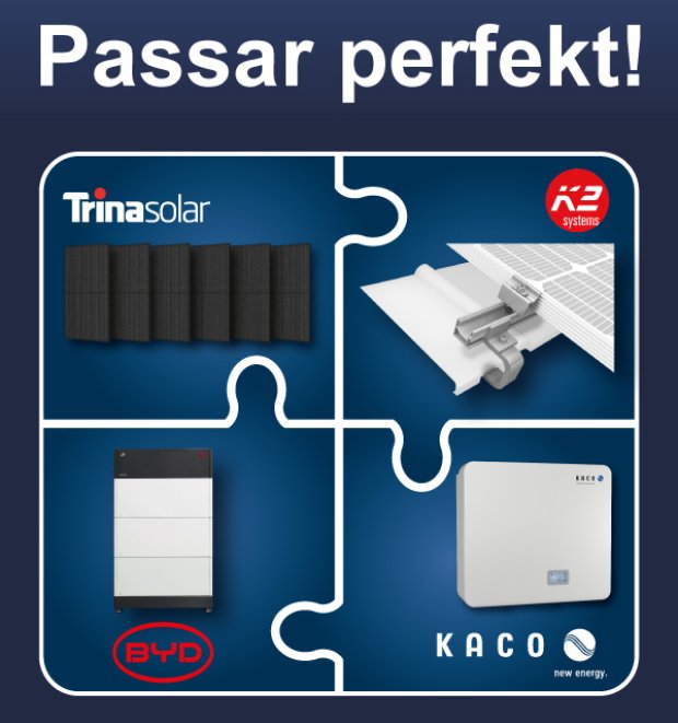 Trina Solar är en ledande global leverantör av helhetslösningar för solenergi. Företaget grundades 1997 och är idag verksamt i över 100 länder och regioner. Trina Solar utvecklar solcellsmoduler, energilagringssystem, intelligenta system- och driftlösningar och erbjuder sina kunder skräddarsydda lösningar för systemintegration. Vertex S+ (NEG9RC.27) imponerar med sin långa hållbarhet och höga prestanda (upp till 440 Wp) i kombination med den designstyrda estetiken av en Fullblack-modul när den monteras parallellt med taket. Tack vare den stabila dubbelglas-konstruktionen i kombination med celltekniken N-typ i-TOPCon ger Trina en 30-årig effektgaranti och en 25 års produktgaranti.
