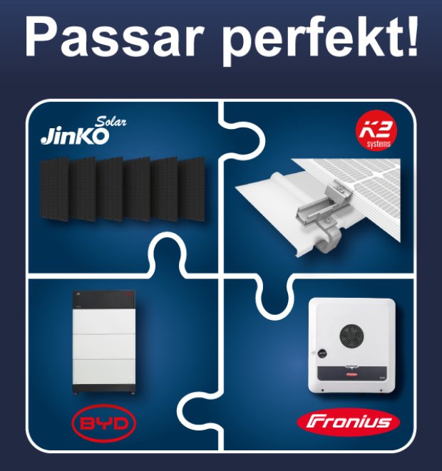 Sedan etableringen år 2006 har JinkoSolar utvecklats till en av världens största och mest innovativa tillverkare av solcellspaneler. Det börsnoterade företaget med huvudkontor i Shanghai producerar och distribuerar högkvalitativa socellslprodukter för alla slags tillämpningar. Med Tiger Neo N-Type 54HL4R-B kombinerar JinkoSolar attraktiv fullblack-design med de senaste utvecklingarna inom modulteknologi, t.ex. rektangulära N-Type-celler, samt långa garantierlöften (25 års produktgaranti och 30 års linjär effektgaranti).