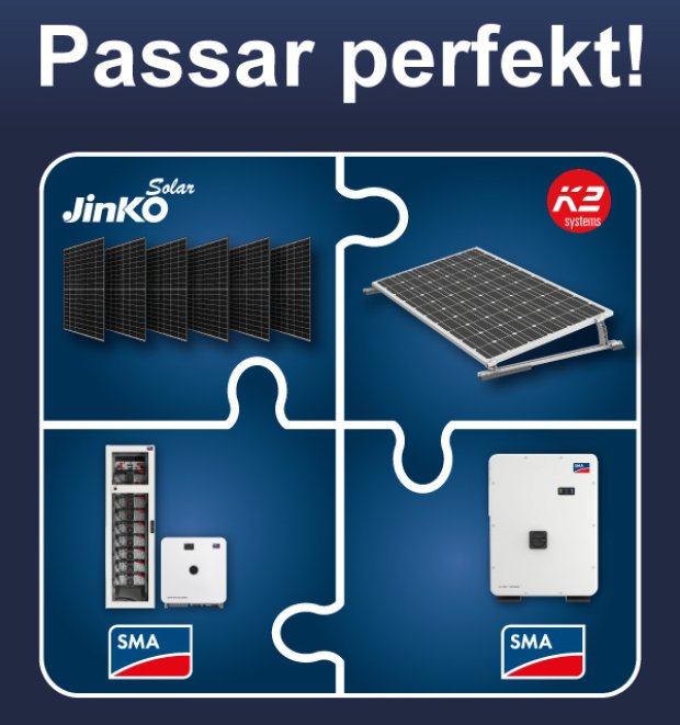Länk: Produktdatablad / Länk: Produktwebbsida - SMA Commercial Storage Solution 30, bestående av hybridväxelriktaren Sunny Tripower Storage X, batterilagringen SMA Commercial Storage med en kapacitet på 30 kWh och en Energy Meter, är SMAs heltäckande energilagringssystem för kommersiella tillämpningar. Förutom enkel installation erbjuder SMA omfattande support under hela produktlivscykeln. Tack vare modulära komponenter är systemet flexibelt och kan utökas.bestående av hybridväxelriktaren Sunny Tripower Storage X, batterilagringen SMA Commercial Storage med en kapacitet på 30 kWh och en Energy Meter, är SMAs heltäckande energilagringssystem för kommersiella tillämpningar. Förutom enkel installation erbjuder SMA omfattande support under hela produktlivscykeln. Tack vare modulära komponenter är systemet flexibelt och kan utökas.