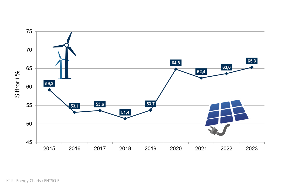 Den förnybara strömproduktionskapaciteten steg i 2021 med 9,57 %.