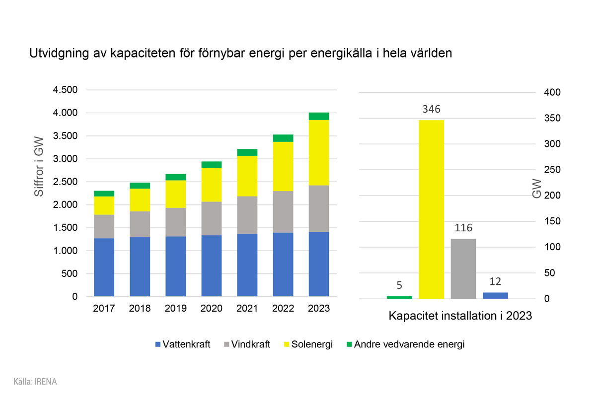 I 2022 nyinstallationerna till 295 GW, varav 192 GW kom från solenergi.
